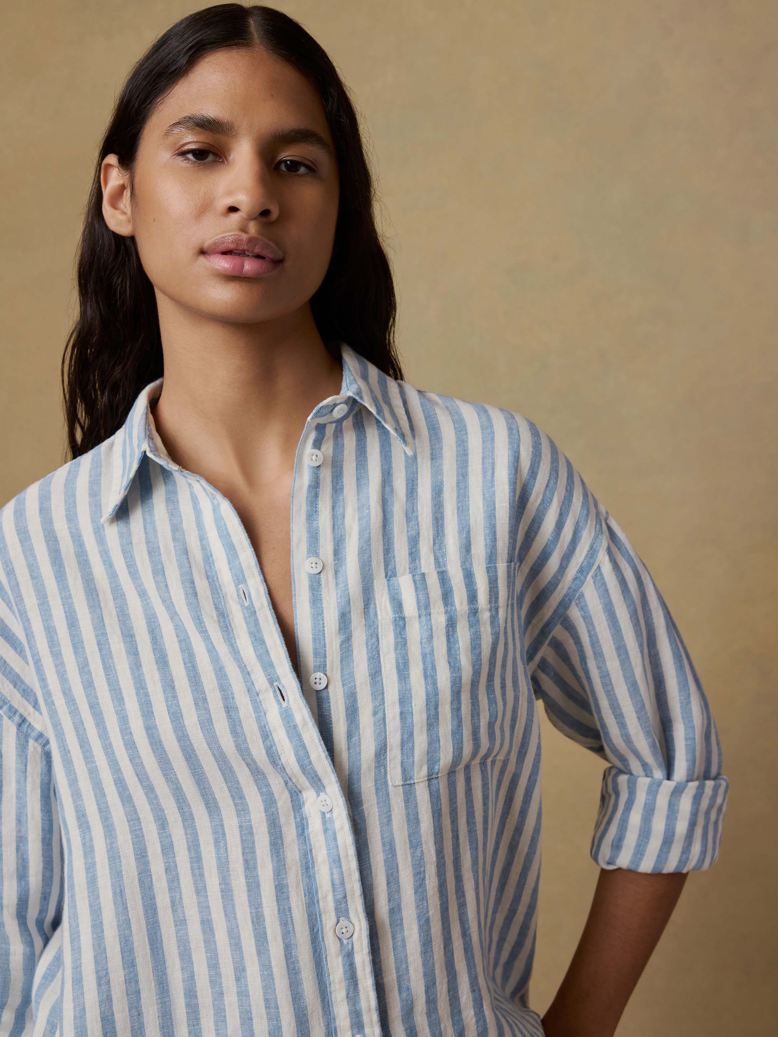Laguna Linen Relaxed Shirt - Ocean Lucy Stripe