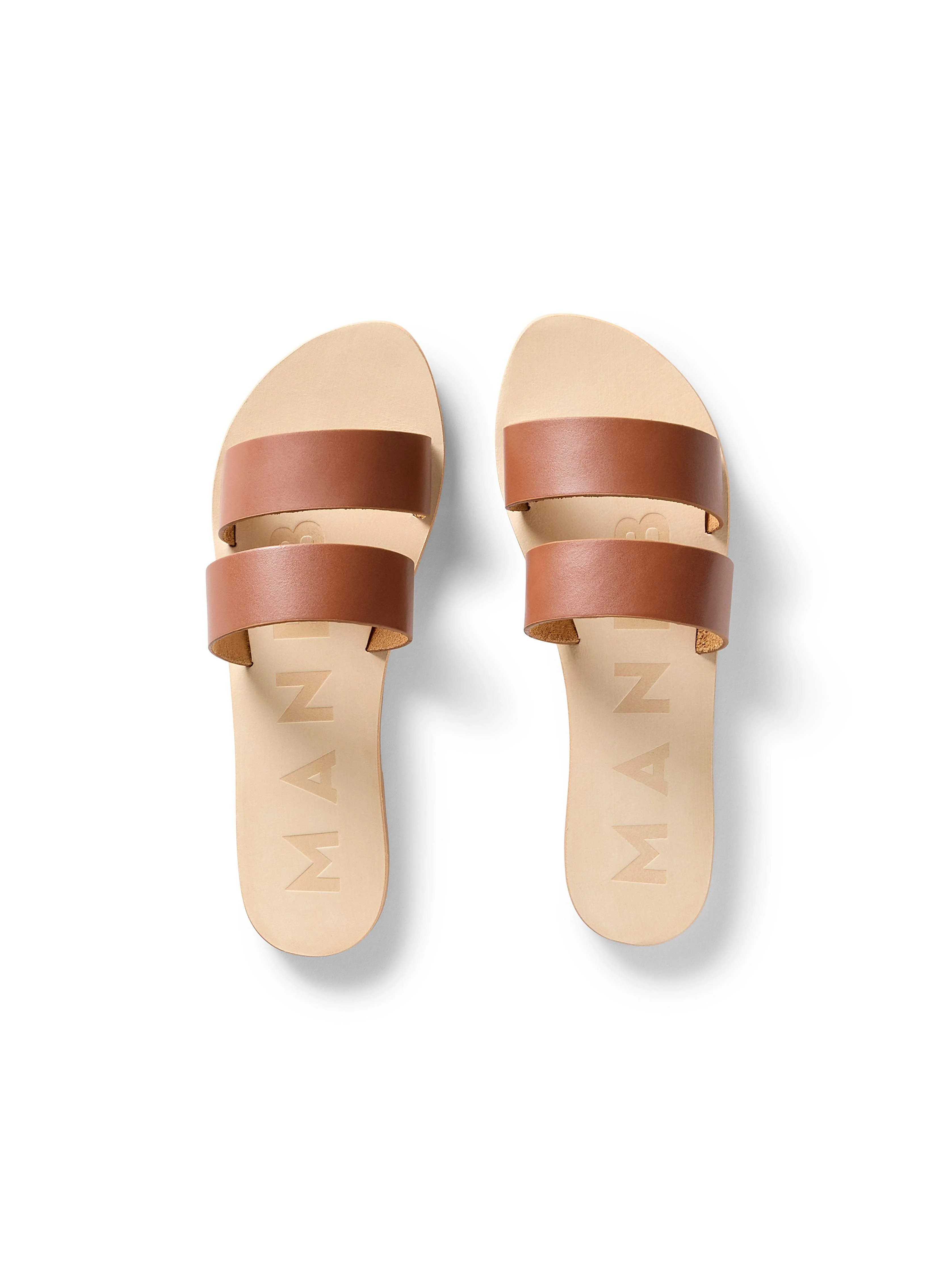 Manebi Leather Two Strap Sandal - Tan
