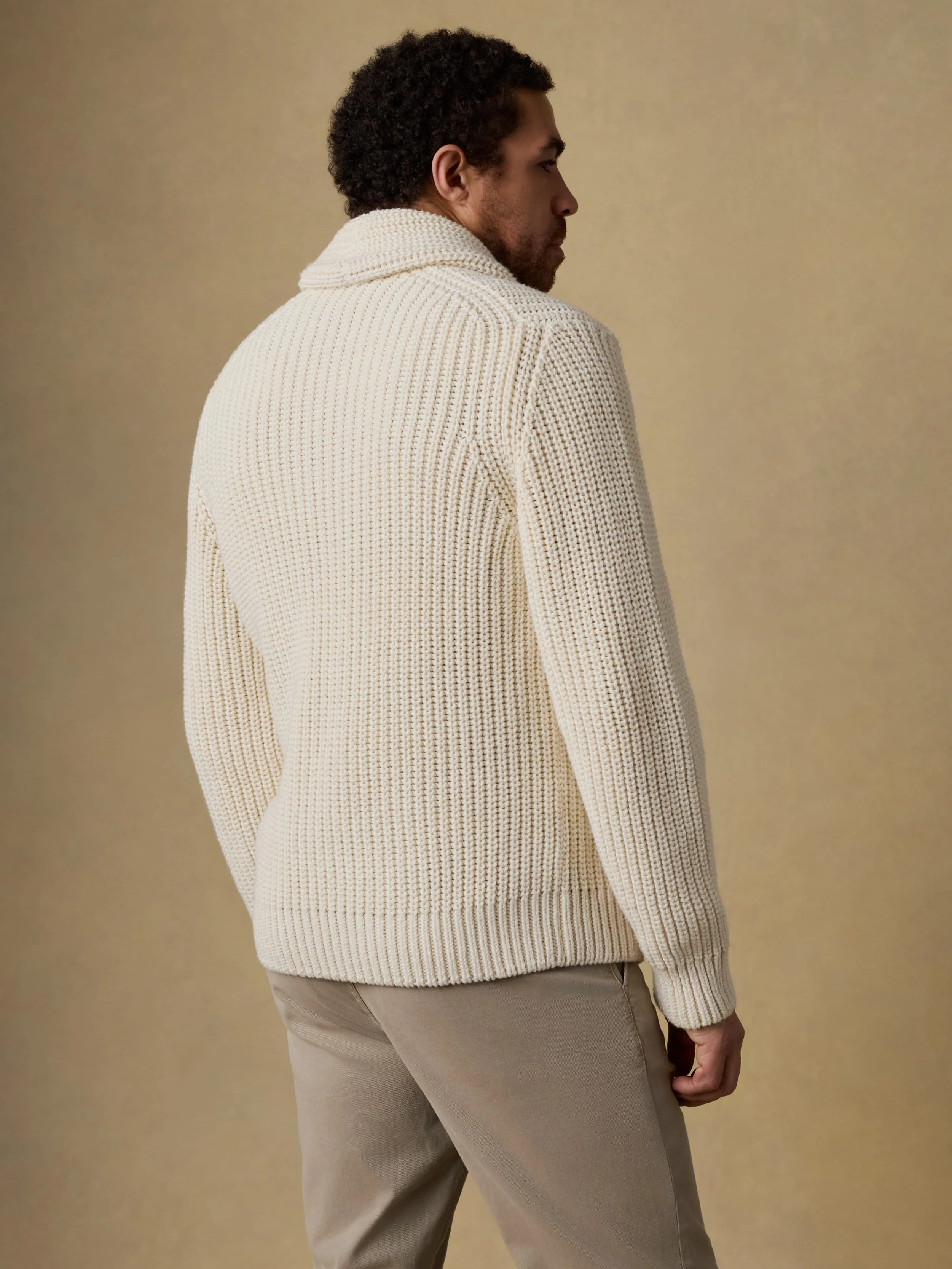 Made from 100% Peruvian Tanguis cotton, this classic cardigan features a chunky, textured knit that feels soft and breathable while adding just the right amount of warmth for cooler days. Finished with ribbed trim, front pockets, and coconut buttons, it’s an easy, familiar layer designed to wear well season after season.