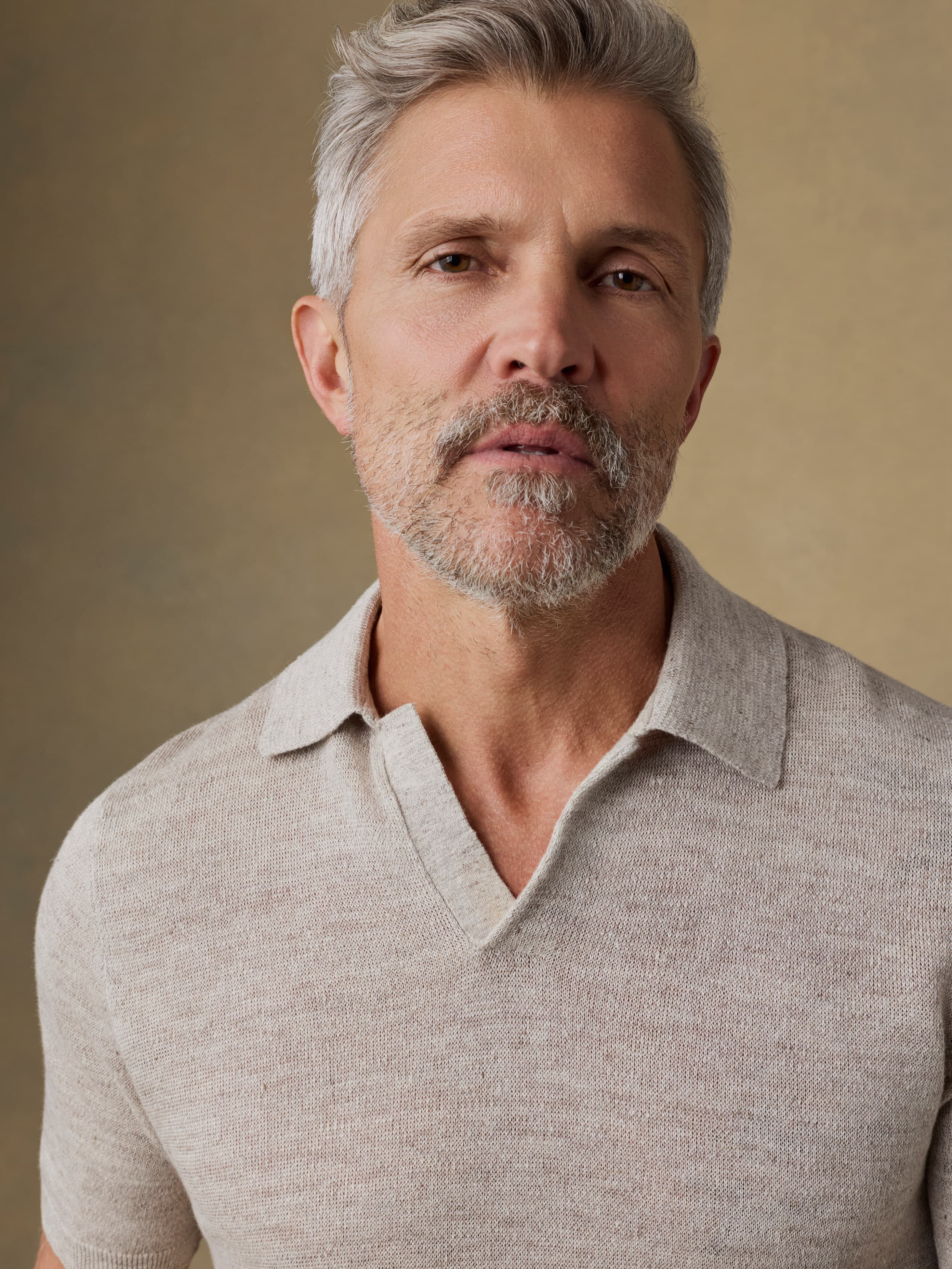 Short-Sleeve Linen Sweater Polo - Tropic Sands Melange