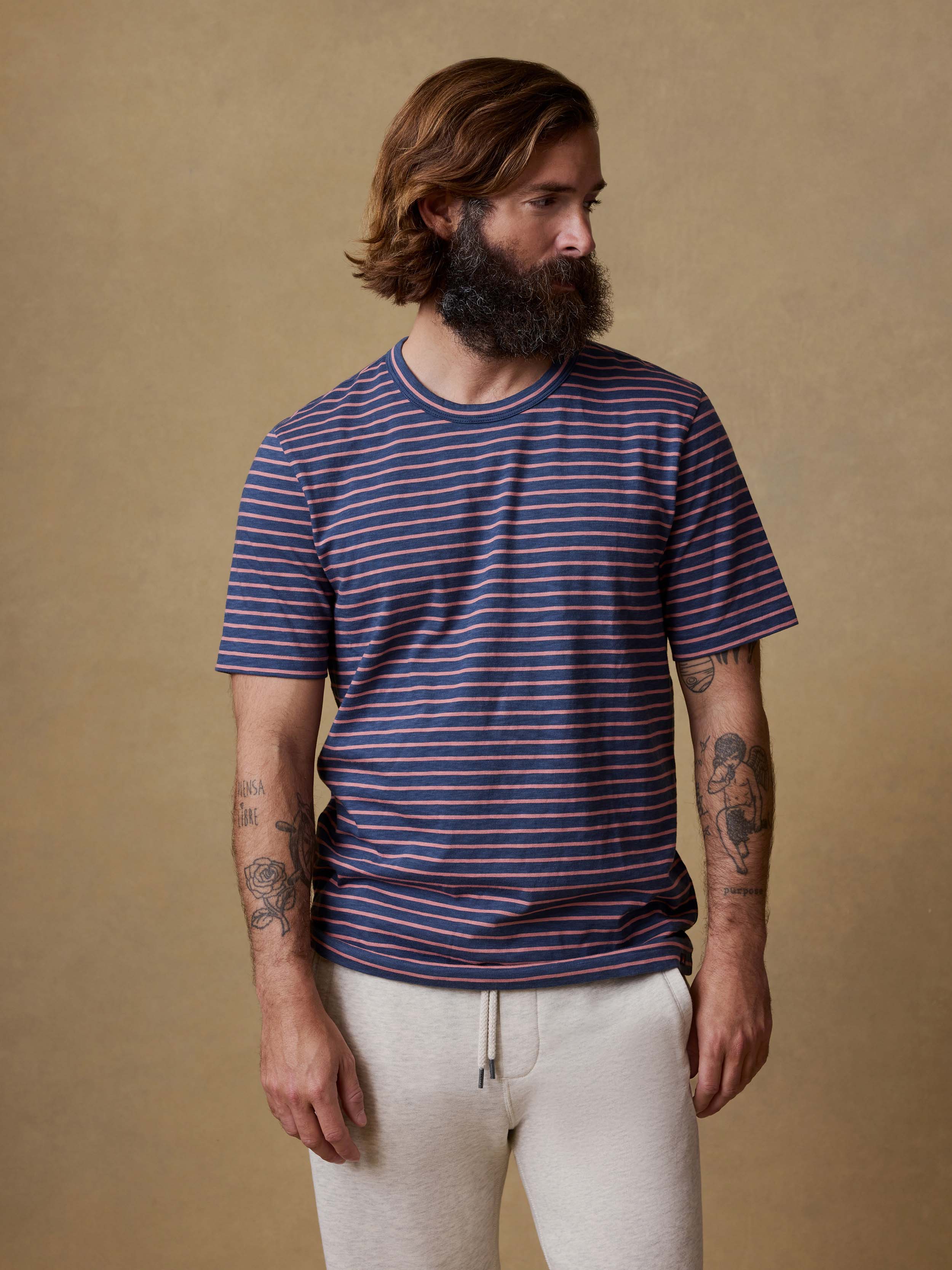 Sunwashed Regenerative Tee - Navy Rose Stripe